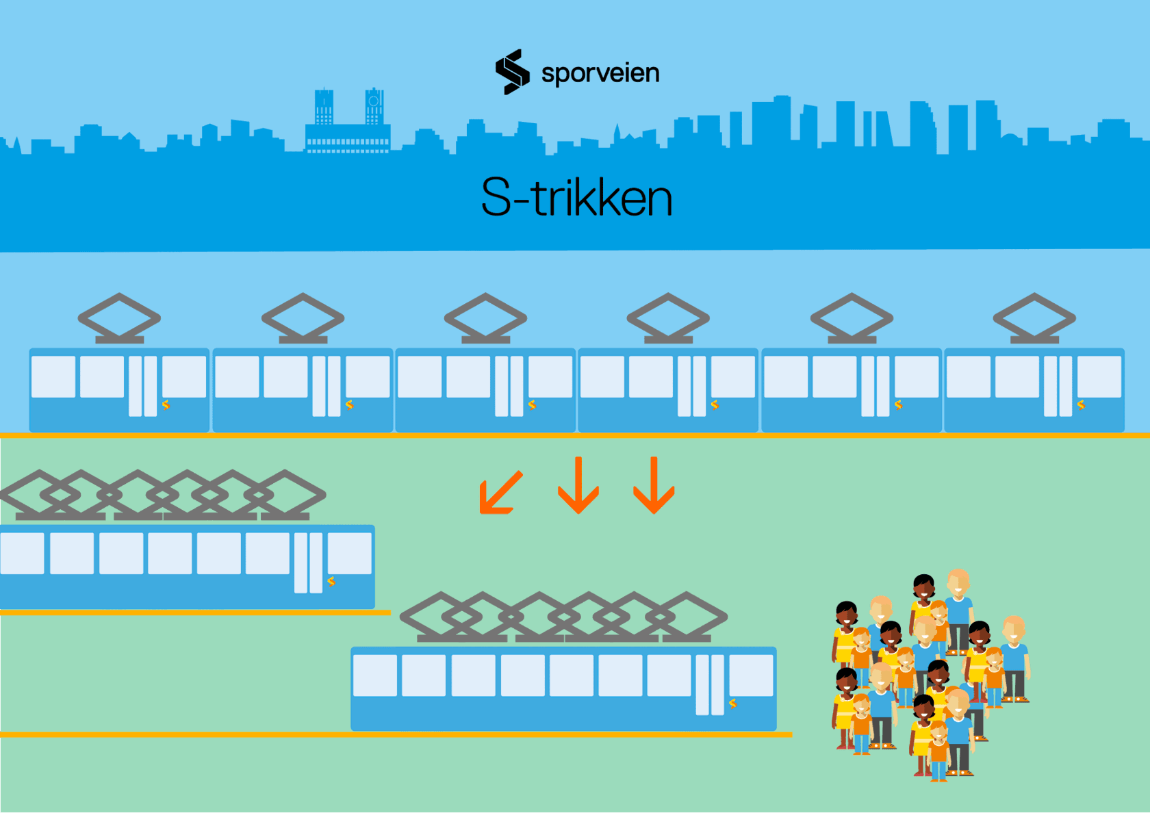 Sporveien skal bidra aktivt til at Oslo har et fremtidsrettet, sikkert og miljøvennlig kollektivtilbud som ivaretar innbyggernes mobilitetsbehov. Vi skal bidra til å forvalte ressursene i kollektivsystemet slik at samfunnet får mest mulig kollektivtrafikk for pengene.