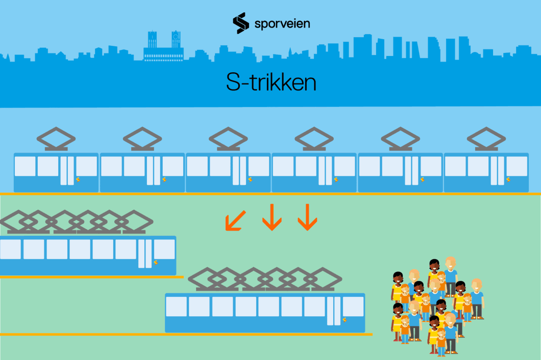 De nye S-trikkene vil være fleksible i lengde og kan foldes sammen og trekkes ut etter behov for passasjerkapasitet. På den måten vil de ikke ta så mye plass i bybildet. S-trikkene løser også utfordringene med basekapasitet for Sporveien fordi de totalt ikke vil være mer enn fem meter lange når de er brettet fullstendig sammen.