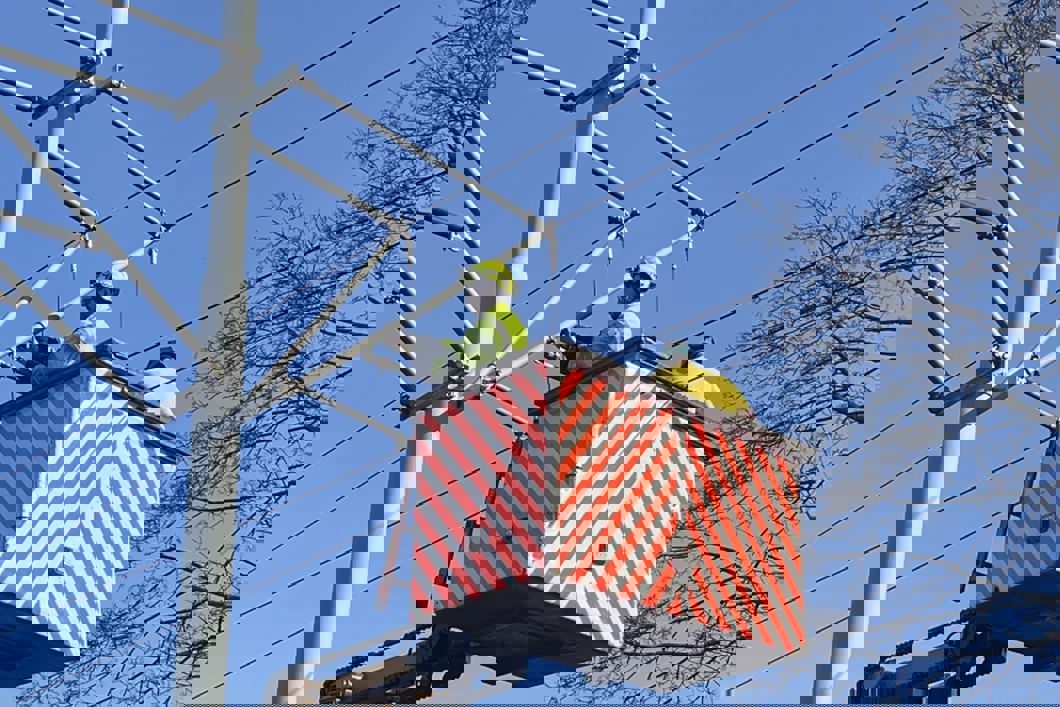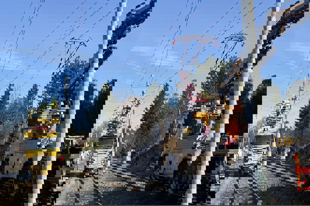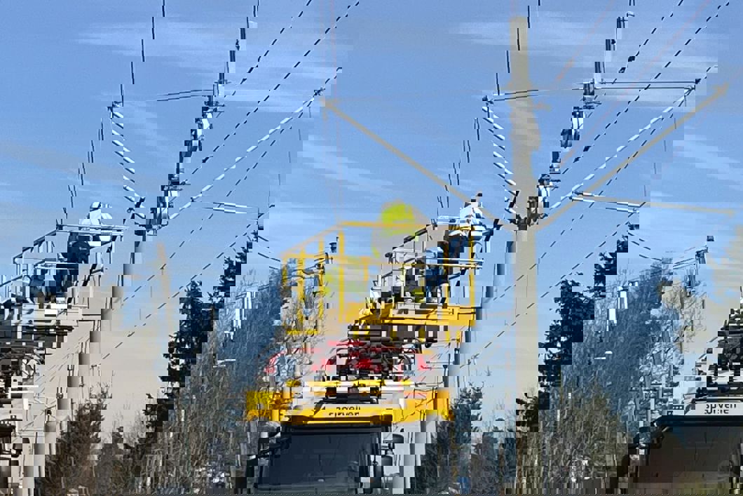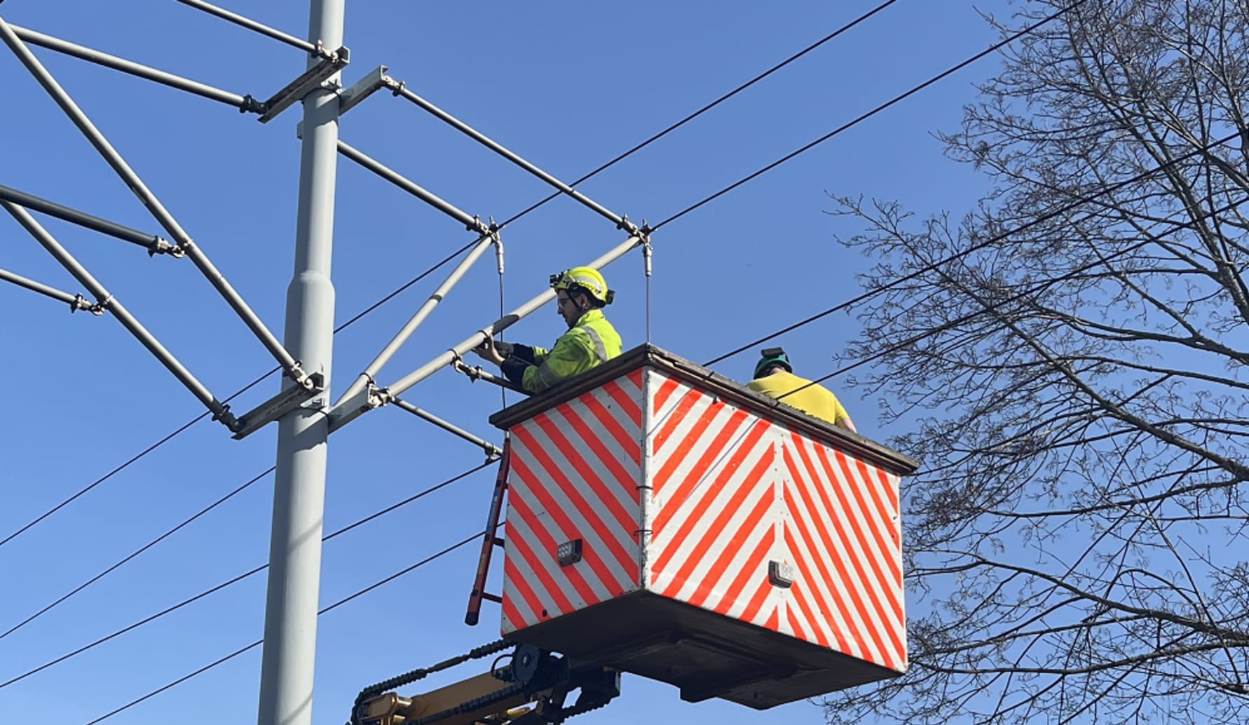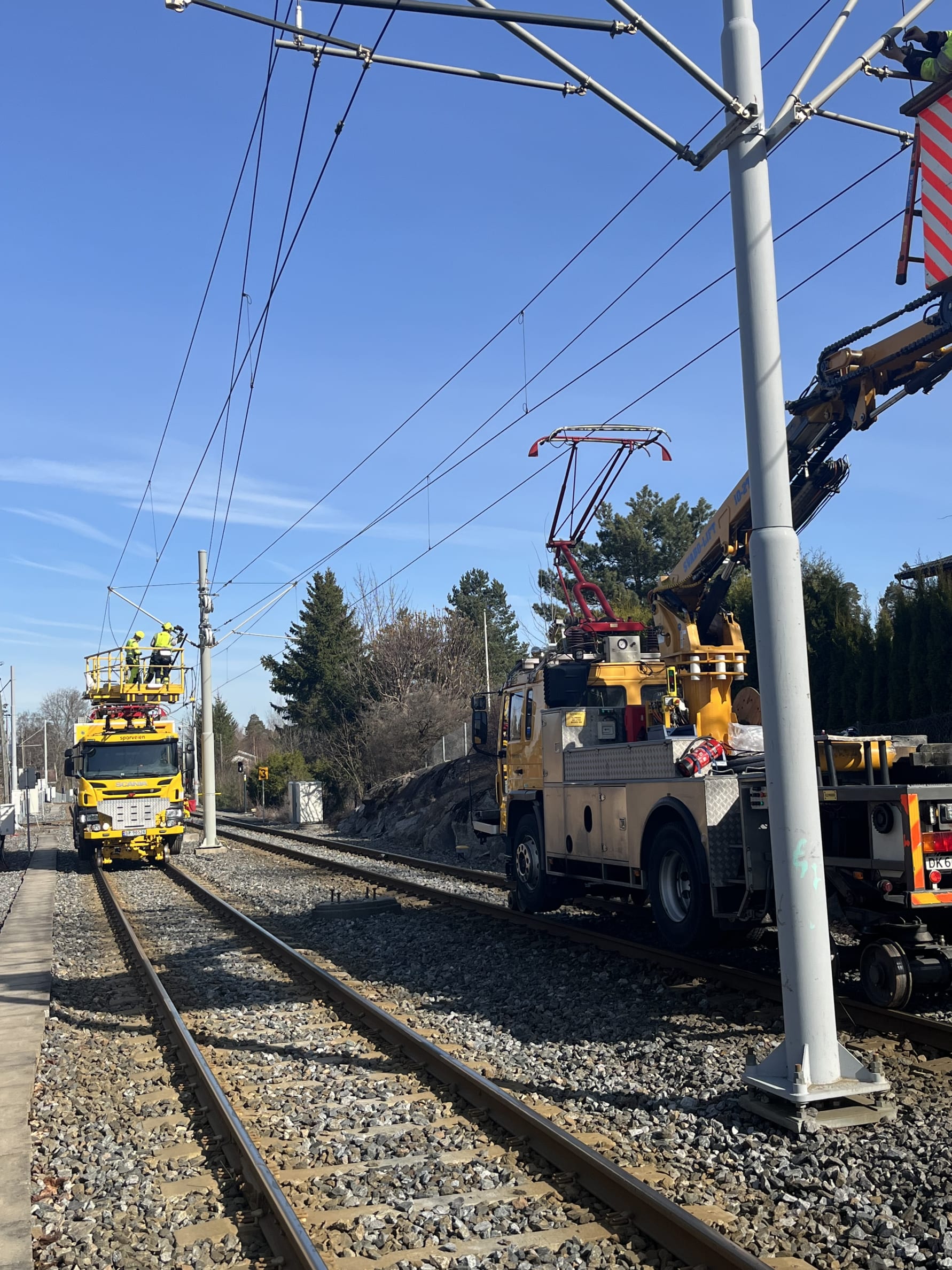 Arbeid på kontaktledningene mellom Ljabru og Bråten. Foto: Sporveien.