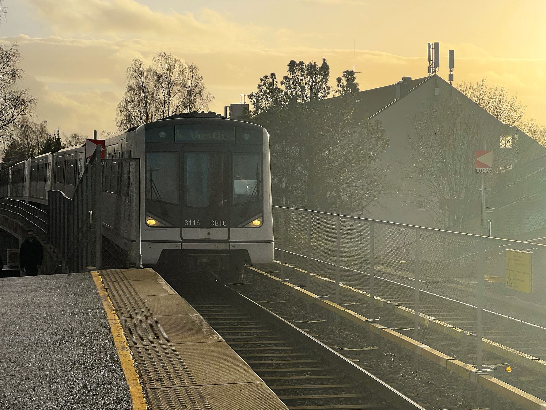 CBTC: Alle tog som er bygget om for å kunne kjøre på nytt signalsystem har merket fronten med bokstavene CBTC - Communication-Based Train Control. Foto: Sporveien AS/Gina Scholz.