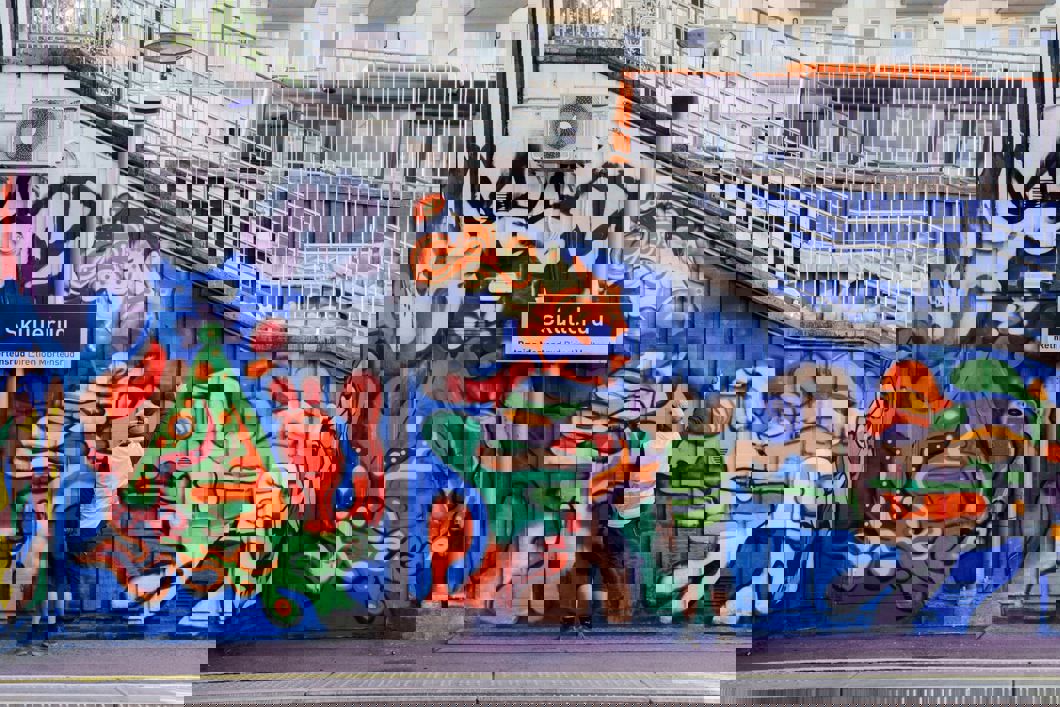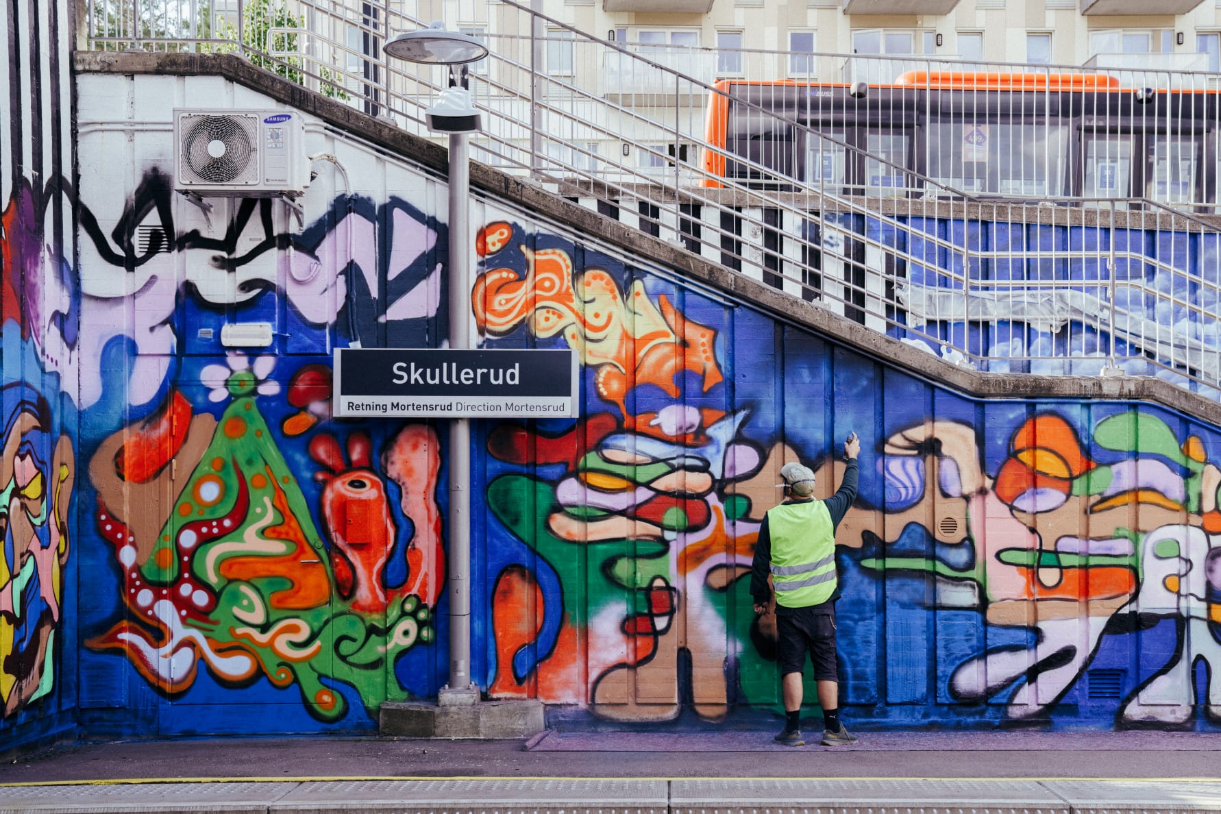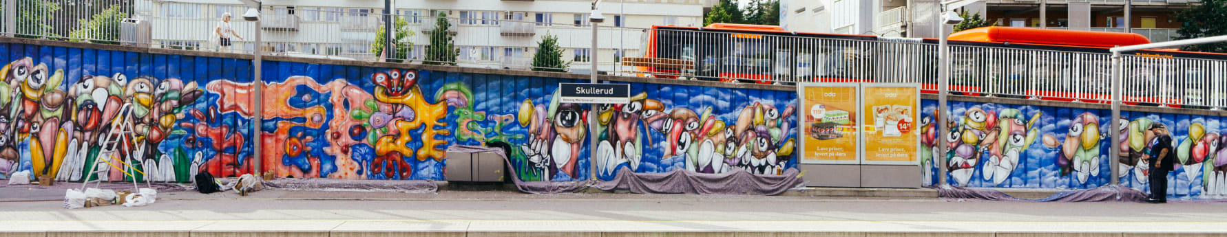 Skullerud stasjon ble i 2016 dekorert av den spanske kunstneren Felipe Pantone. Med sitt ultradynamiske design har han preget stasjonen i mange år, men dessverre har ikke stasjonen tålt tidens tann og trengte nå nytt liv.