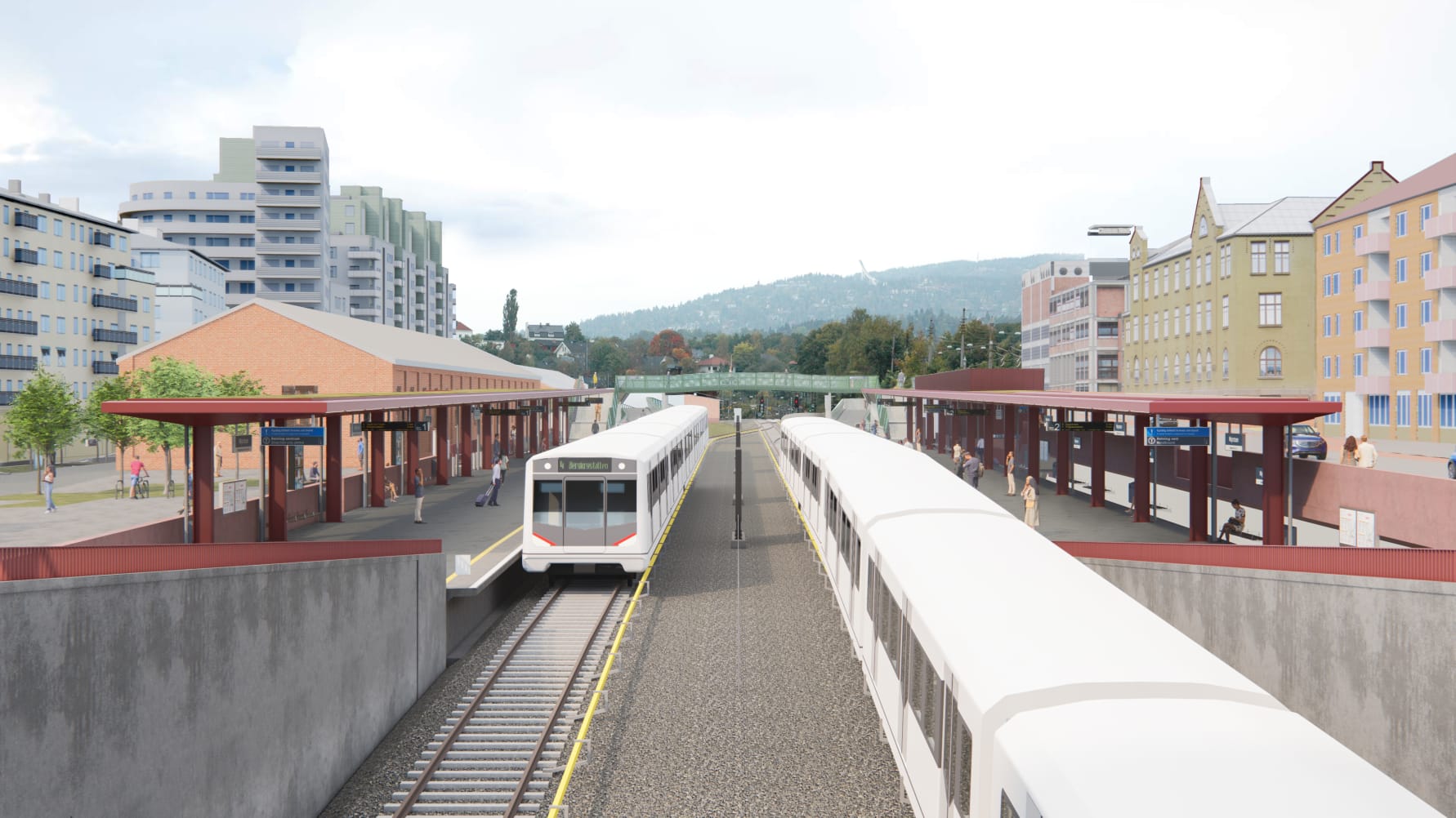 Oppgradert Majorstuen stasjon får flere adkomster, større plattformer og en ny gangbru i vestenden av stasjonen. Alle illustrasjoner: Team Major.