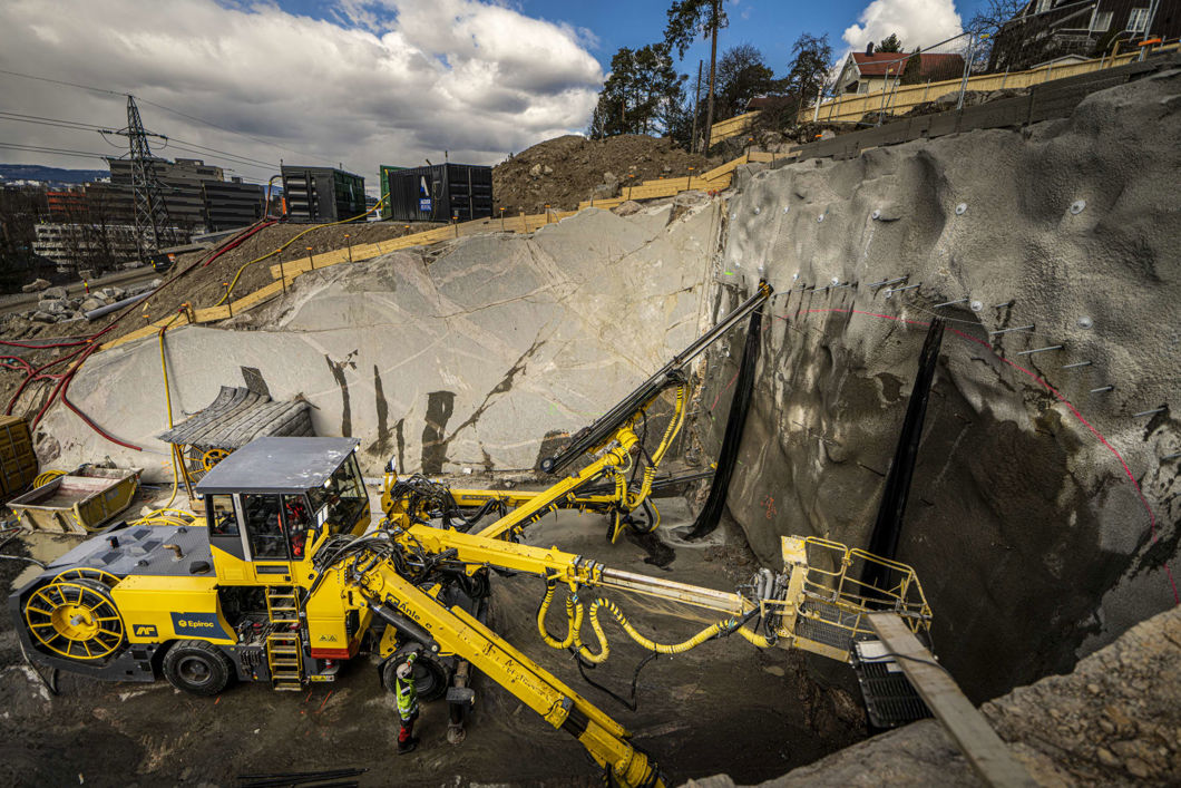 Tunnelen bygges med tradisjonell tunneldriving, ved at det først bores og deretter sprenges innover i fjellet.