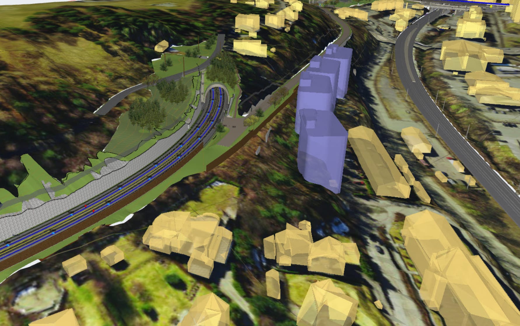 INN I FJELLET: Ny trasé går inn i fjellet under Thygesons vei, istedenfor nedover skråningen. Illustrasjon: Sporveien / Aas-Jakobsen Vianova-nettverket