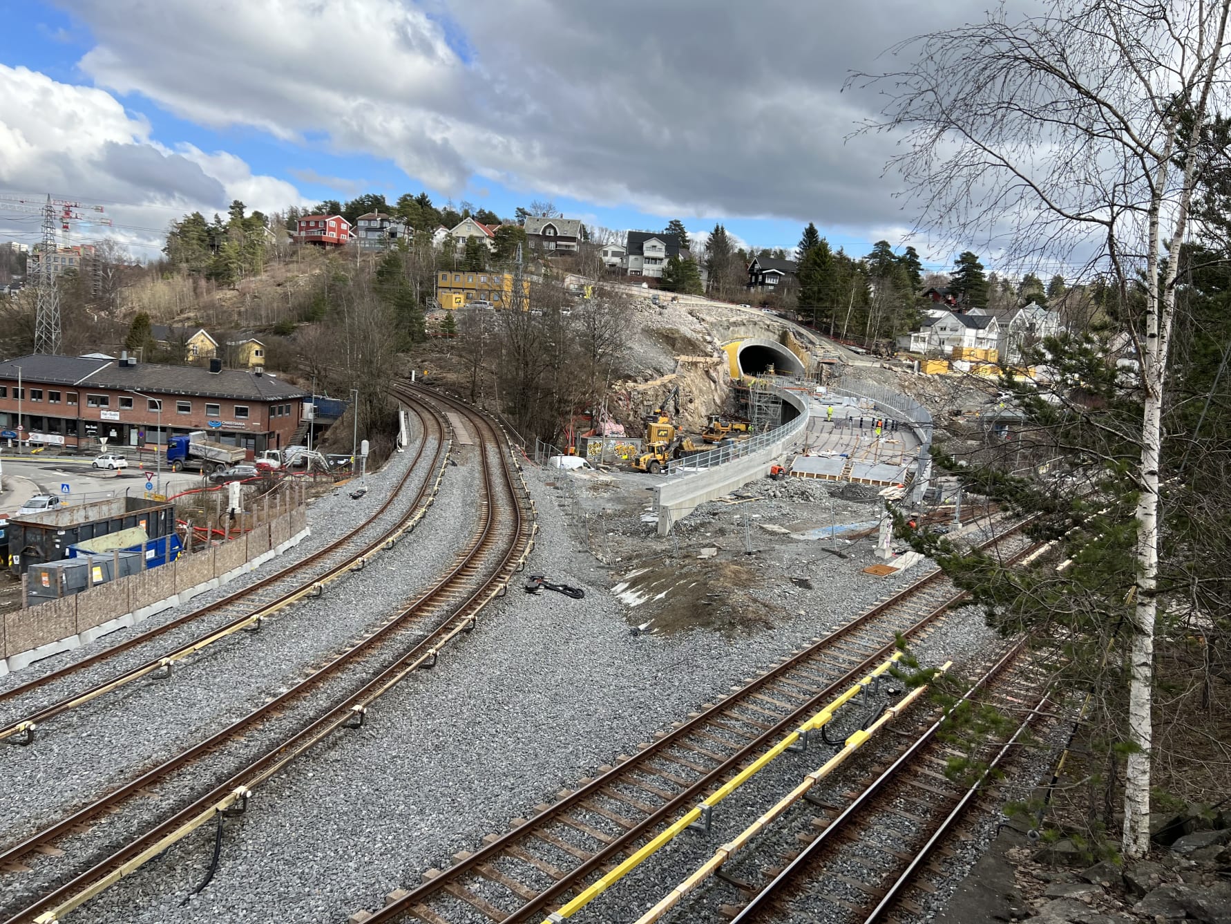 – Vi startet arbeidene høsten 2021, og status i dag er at vi har fått sprengt ut den nye Hellerudtunnelen på nesten 400 meter, og skiftet ut de to bruene over Østensjøveien og Alnaelva. I tillegg er det utført en rekke bygningsmessige og tekniske arbeider for klargjøring av ny trasé, og vi holder fremdriftsplanen, forteller Broch.