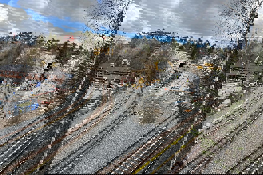 – For å bygge ferdig ny trasé må vi sprenge oss vei fra tunnelåpningen opp til Hellerud stasjon. Store masser skal fraktes bort før ny trasé kan ferdigstilles opp til stasjonen. Dette arbeidet kan ikke utføres med trafikk rett ved siden av, og deler av ny trasé skal bygges der den gamle traseen ligger i dag, forklarer Broch om varigheten av bruddet.
