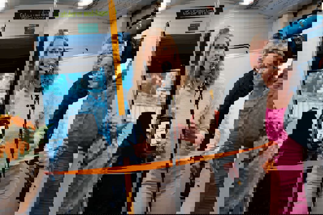 – Dette er en grønn festdag! T-banen, som betyr så mye for så mange mennesker i byen vår, er i full drift igjen. Vi må si tusen takk til alle passasjerer som har kjørt buss for bane i 3,5 måned, i påvente av åpningen. Det har utvilsomt vært frustrerende til tider å sitte i saktegående kø mellom alt for mange privatbiler. Jeg vil også rette en stor takk til Sporveien og alle som har jobbet gjennom uker og måneder for å ferdigstille dette store og krevende prosjektet. Nå kan folk igjen sette seg til rette i de romslige T-banevognene og nyte T-banens store fortrinn – den har fri bane til og fra sentrum, sier byråd for miljø og samferdsel Sirin Stav.