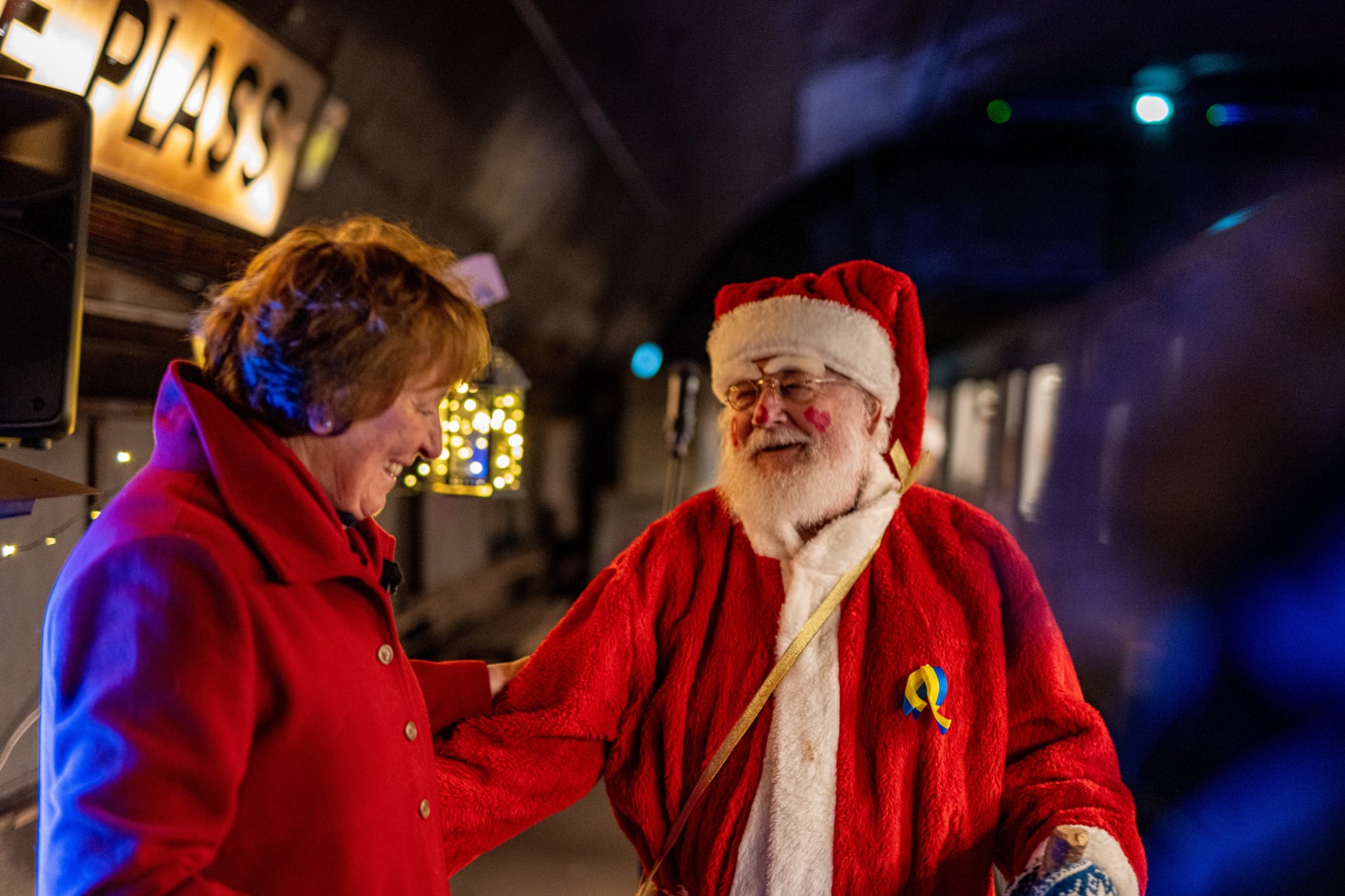 Like etter tenningen av lysene på lystrikken gikk turen til Valkyrie plass stasjon – der T-banen gjorde en ekstra stopp for å slippe av de som skulle være med på åpningen av neste utstilling. Lysene på årets juleutstilling for T-banen ble også tent av ordfører Marianne Borgen. Oppmerksomme T-banepassasjerer vil se utstillingen på inngående plattform på den nedlagte stasjonen helt frem til jul.