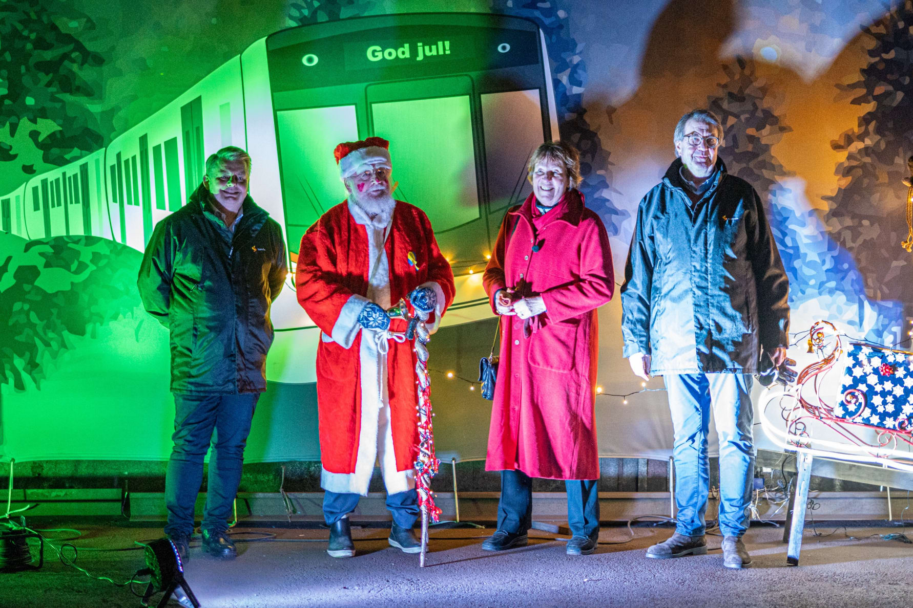 Det var en stor gruppe fremmøtte som hadde kommet for å være med på å ønske årets lystrikk velkommen. De fikk også være med på den første turen med julepyntet trikk til Nationaltheatret der det var overgang til T-banen.