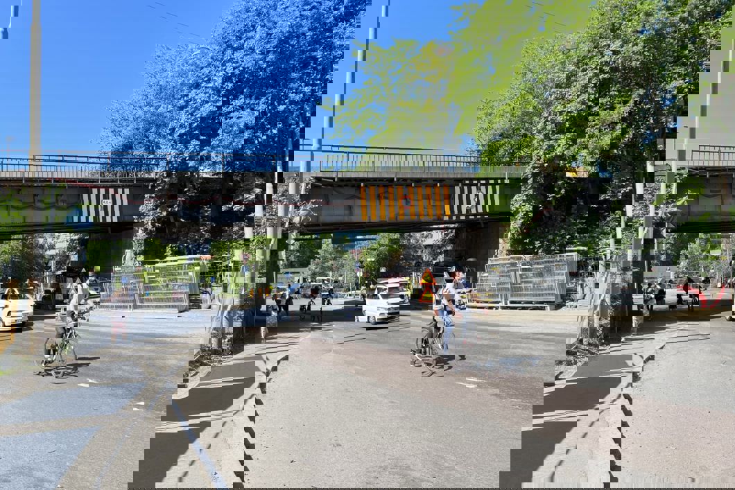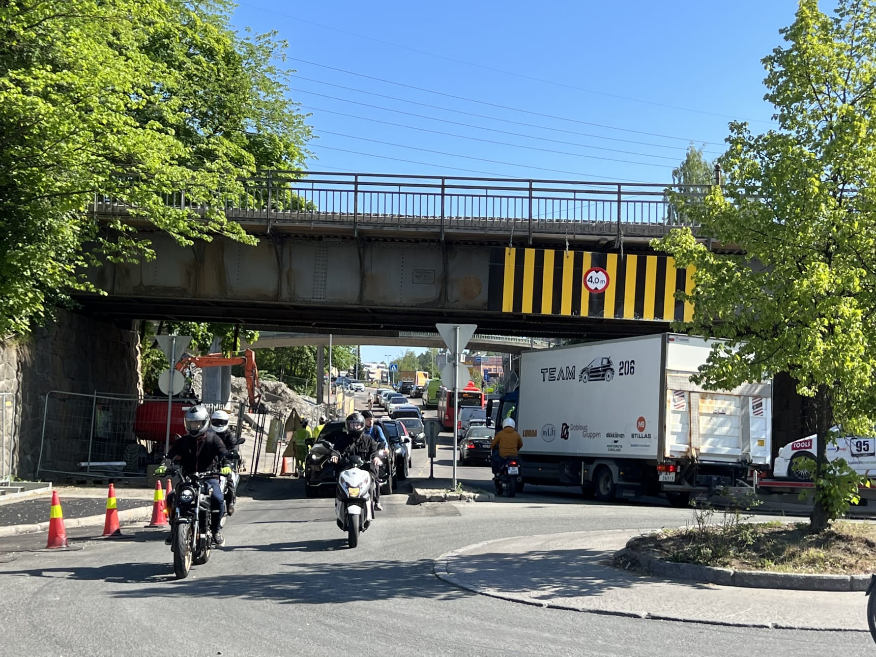 Fra natt til lørdag 10. juni stenger Østensjøveien for riving av den gamle og lave T-banebrua over veien. Fotgjengere og syklister får en passasje gjennom anleggsområdet, mens bilistene må finne alternative ruter.