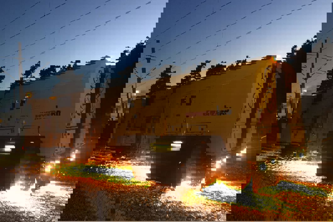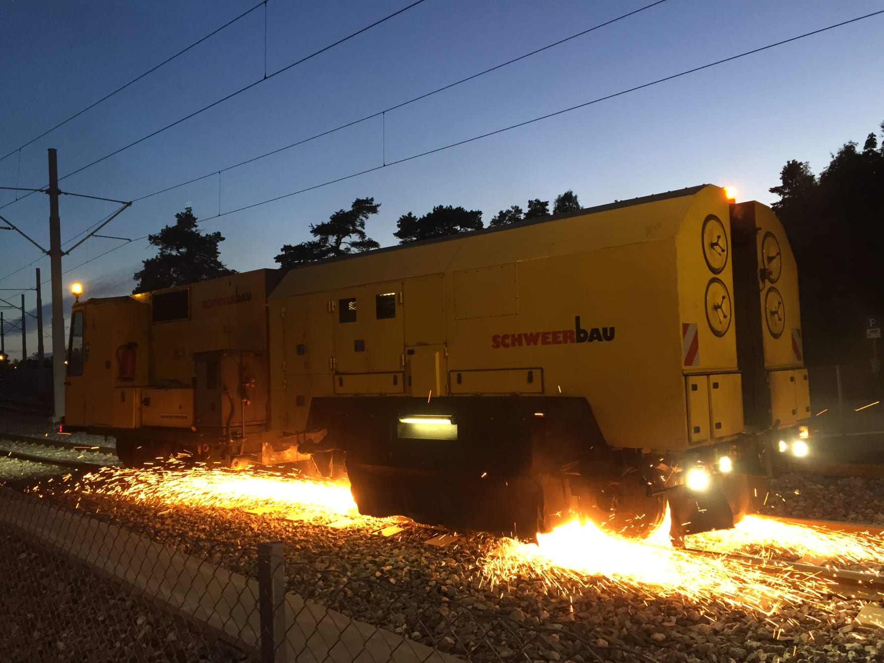 Skinneslipemaskin i arbeid