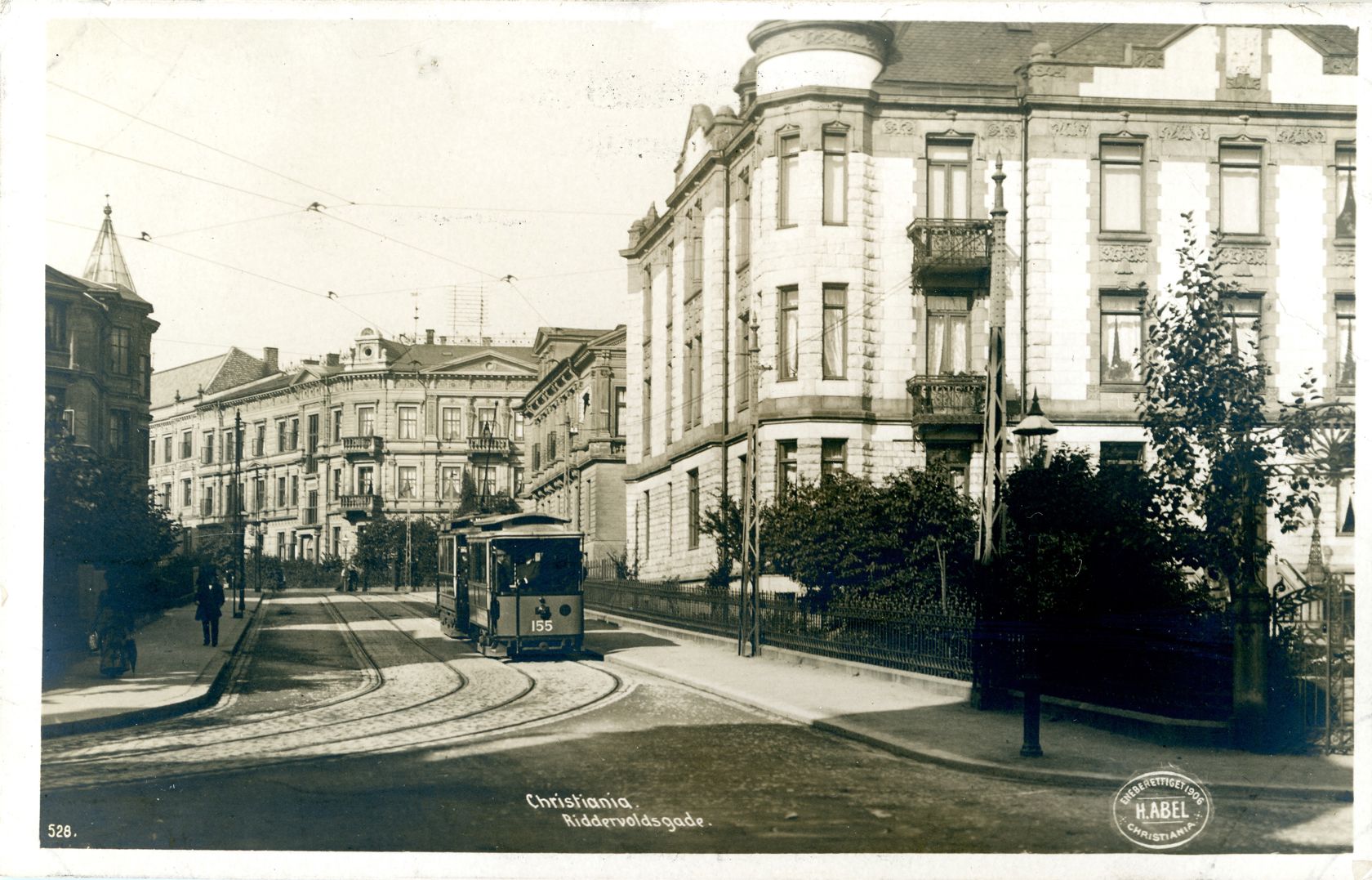 Trikken er en historisk- og viktig del av bybildet på Briskeby, her avbildet i Riddervolds gate tidlig på 1900-tallet