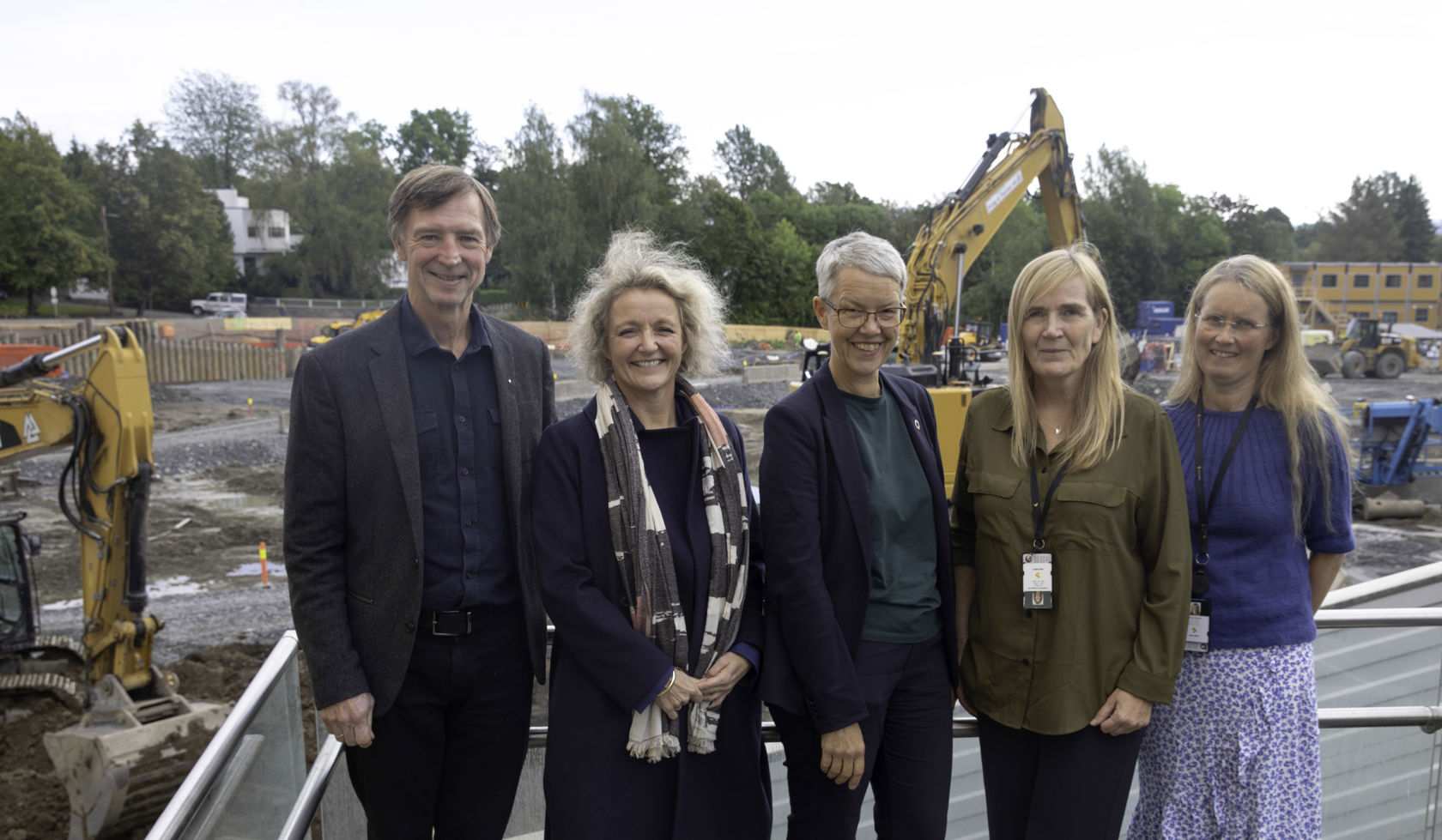 Avtalen om bygging av ny T-banestasjon ble signert 8. september 2025. Fv. styreleder i Diakonhjemmet stiftelse, Paul Erik Wirgenes. Konsernsjef i Sporveien, Birte Sjule, og administrende direktør Ingunn Moser i Diakonhjemmet stiftelse. Prosjektleder Ingeborg Krigsvoll og prosjekteringsleder Anne Orheim. Foto: Pål A. Berg, Diakonhjemmet.