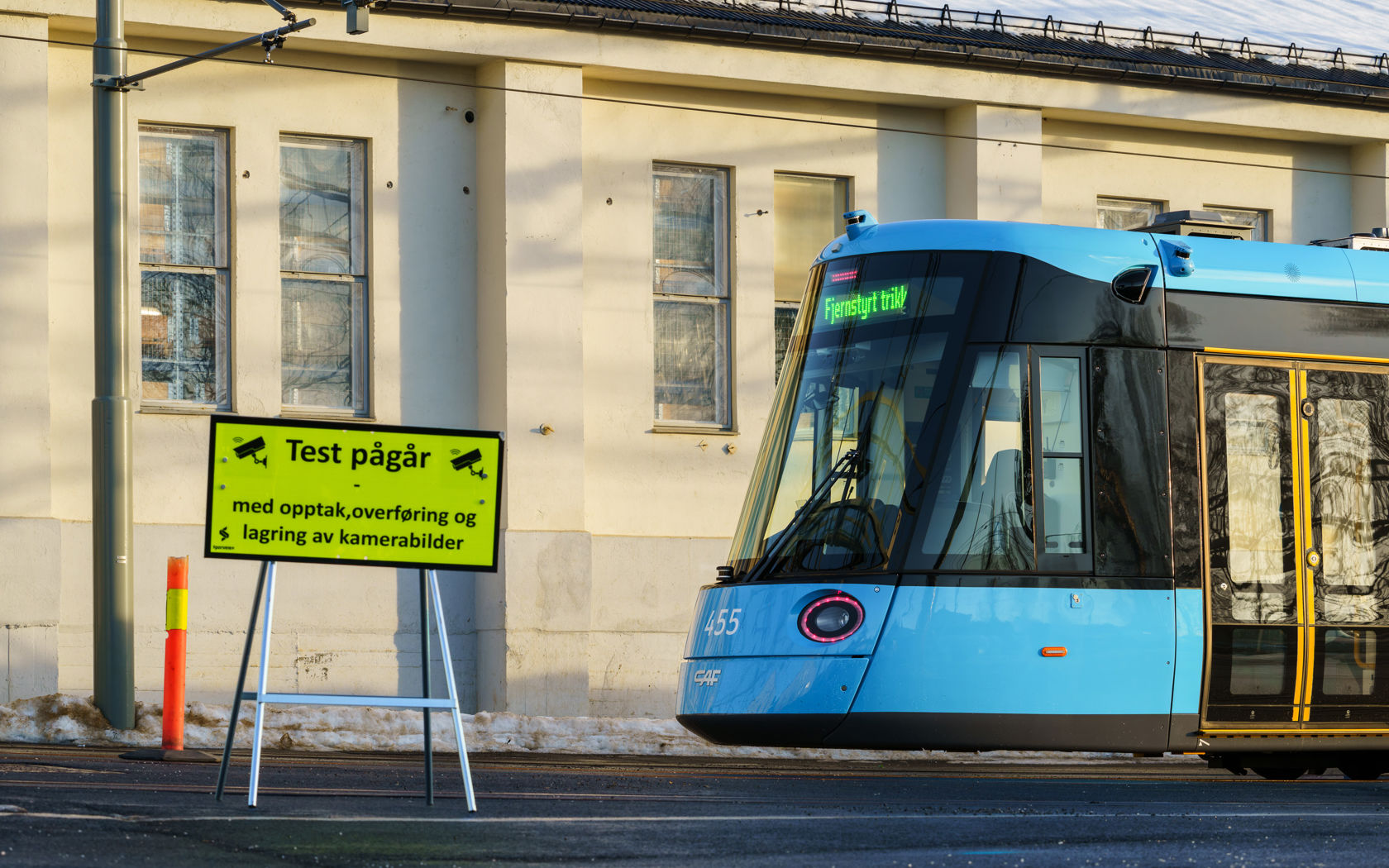 Sporveien and CAF, the supplier of the trams, are collaborating through the EU project “Flagship Project 2: R2DATO – Rail to Digital automated up to autonomous train operation” on the development of autonomous functionality for trams. As part of this project, one of Sporveien's trams is equipped with video cameras that film the tram's surroundings and sensors that detect movements around the tram.